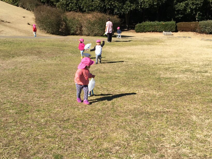 走るの大好き!! 1月28 子供達は走るのが大好き!1月の初めに作った凧を持っていき今月は公園で沢山遊びました。 走ると凧があがることも遊びの中で気づき一生懸命走ります。 『一緒に走ろうね』『よーいドン』 風が強い日は手を放してしまうと飛んで行ってしまい『待って~』と追いかける姿も見られました。 お友達と再度、チャレンジ!! 広い公園を小さな体を沢山動かして遊びました。 寒さに負けずこれからも沢山遊びましょうね。