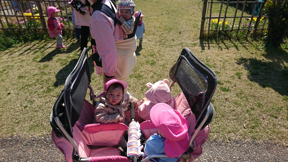 暖かい日は園外散歩に行き、春の花を見たり、風を感じたり、周りの景色を見ながらお散歩をしました。