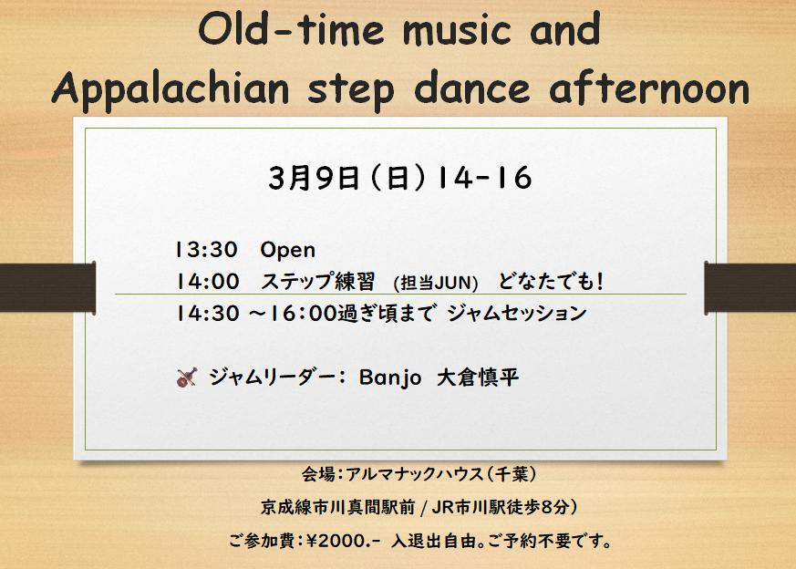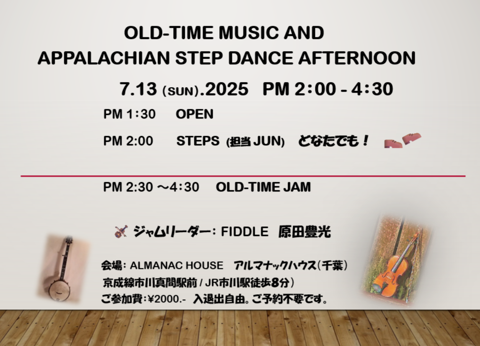 ケンタッキー在住 本場のオールドタイムミュージシャン(&シンガー/ダンサー)ランディー・ウィルソンさんも力強い歌と演奏でご協力下さいました。なんと、私が参加していたケンタッキーのCarla先生のアカデミーの教材に出てくるミュージシャンでもあり、こうして日本でお会いできて共演できるなんて夢のようなひとときでした!他、市川ジャムでいつもお世話になっているミュージシャンご参加、日本のオールドタイム音楽/ バンジョーの研究をされていらっしゃる石川修次先生も応援に来て下さいました。