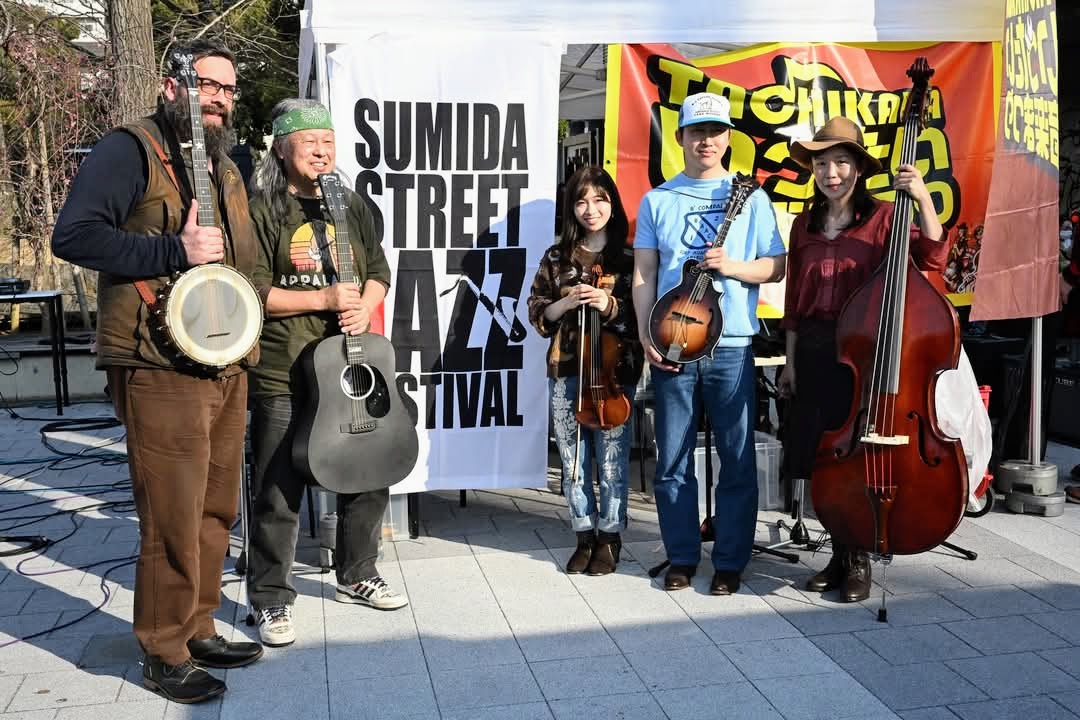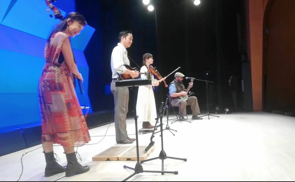 すみだストリートジャズフェスティバル出演の翌日は、千葉県文化会館にて千葉県の文化祭中央行事のステージでした。 選考により選出採用されたアーティストの演奏やダンスが楽しめる千葉県の行事に有難く出演させていただきました。メンバーは フィドル(=バイオリン)Renaさん、 クローハンマーバンジョーJonさん、マンドリン Ryoheiさん、ベース 私Junで、全員千葉県民(わりとご近所)、練習拠点は幕張ベイタウン、市川オールドタイムジャムメンバーでもあります。