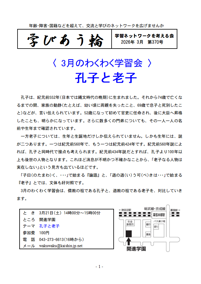 3月のわくわく学習会は、「孔子と老子」がテーマです。