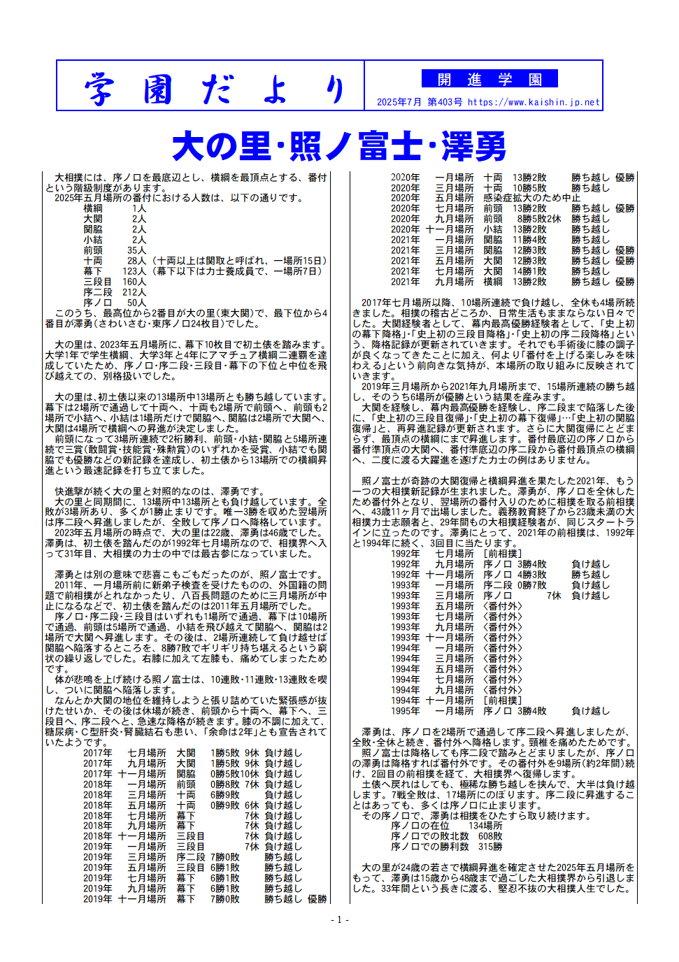 「序の口」の番付に昇るための[前相撲]を三回も経験しながら、2025年五月場所後の引退まで、33年間ひたすら相撲を取り続けました。