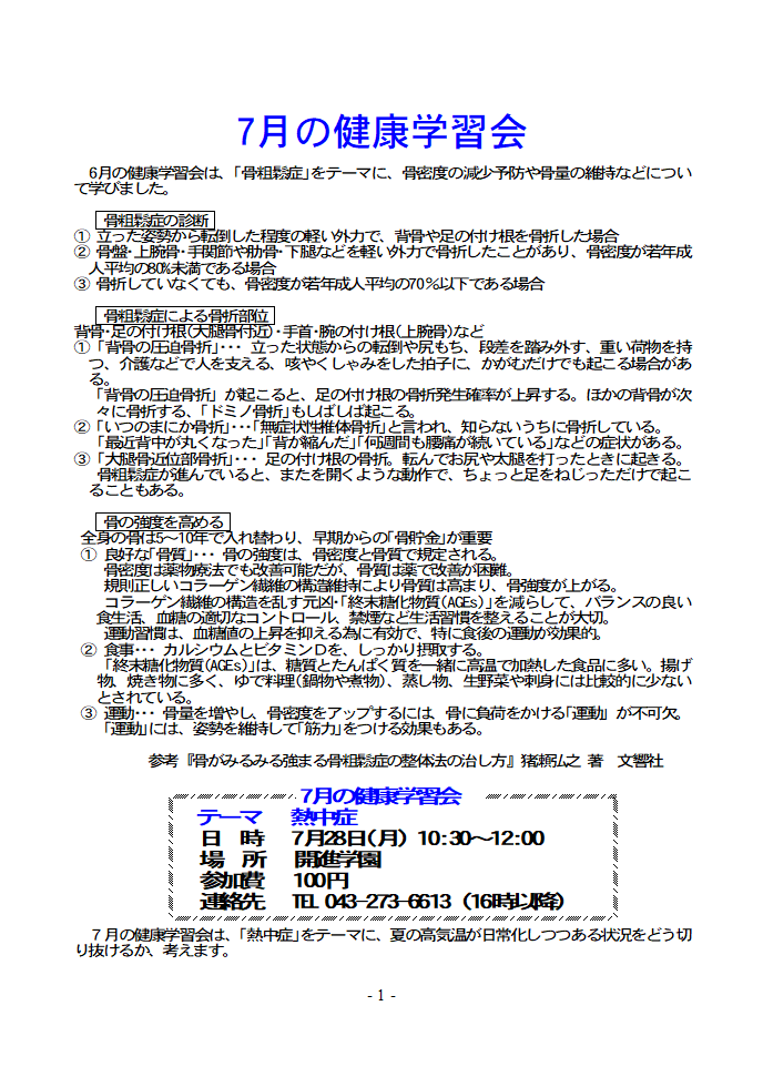 10月の健康学習会のテーマは、「自分で体を鍛える」です。