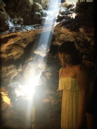 太陽の光が鍾乳洞の隙間から射し込んでそれはそれは美しい光の線が出来た場所。