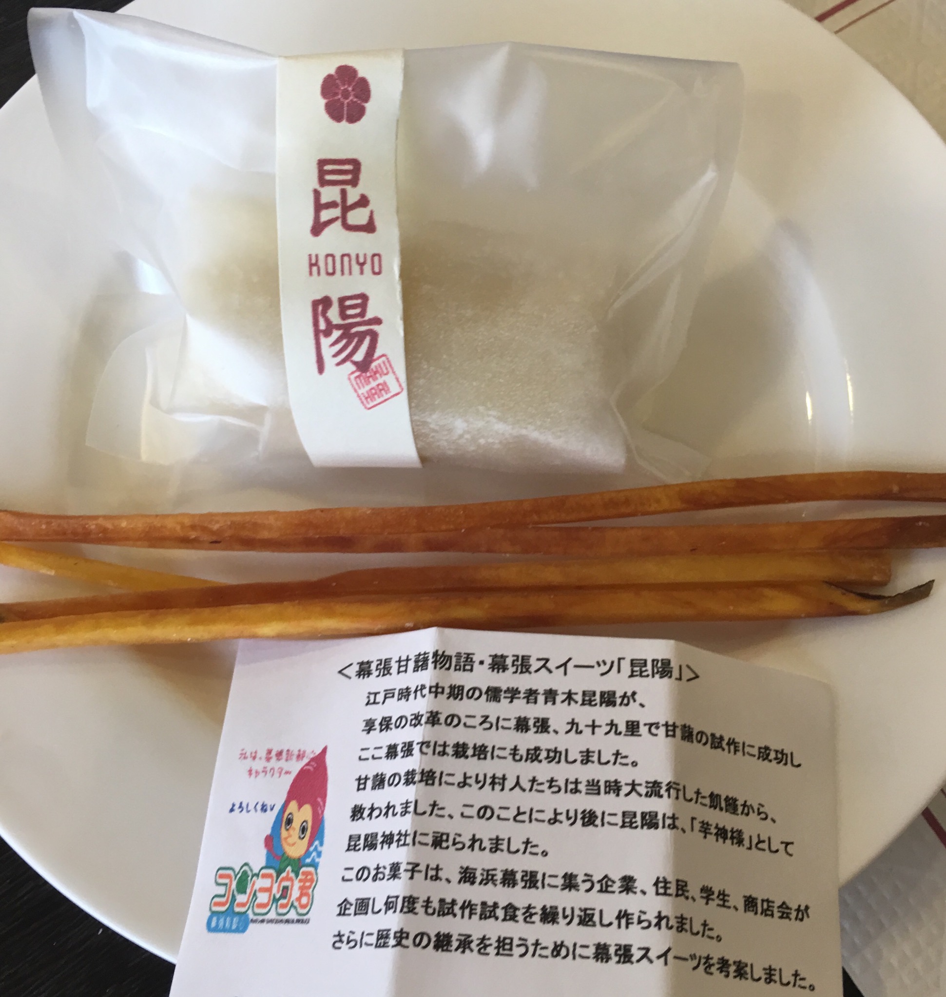芋神様である青木昆陽さんの名前の付いた和菓子『昆陽』とサツマイモの芋けんぴでティータイム☕️