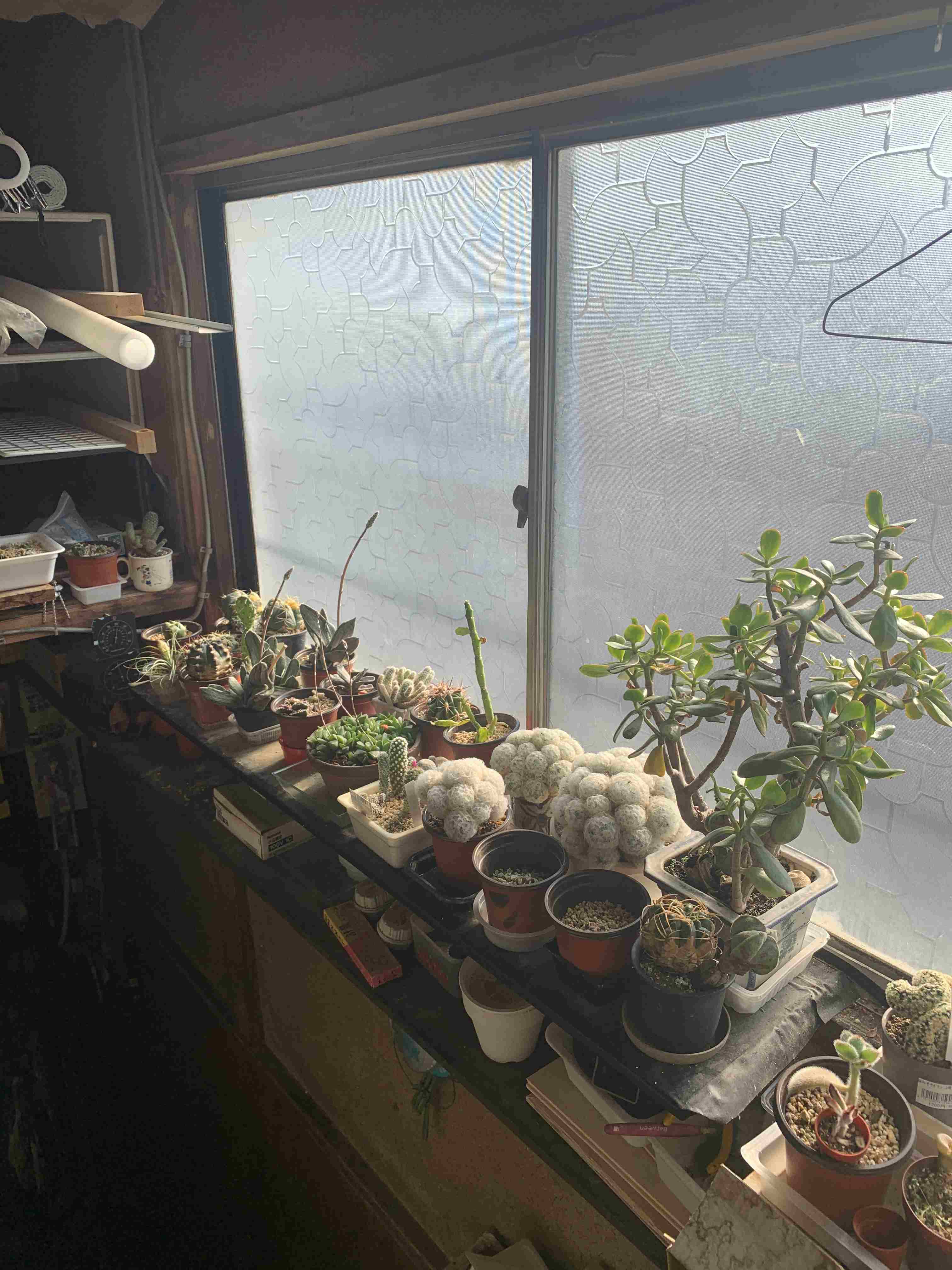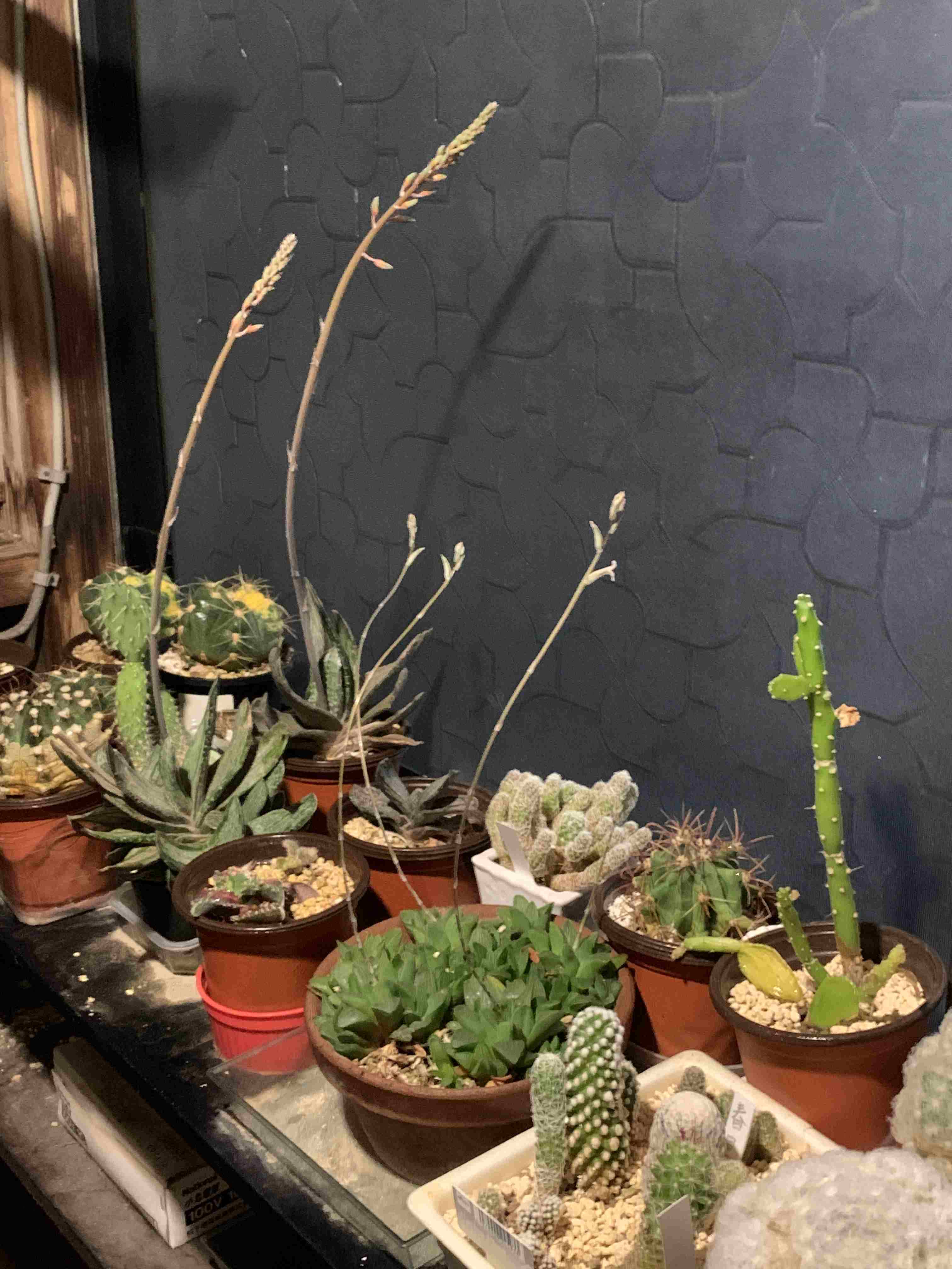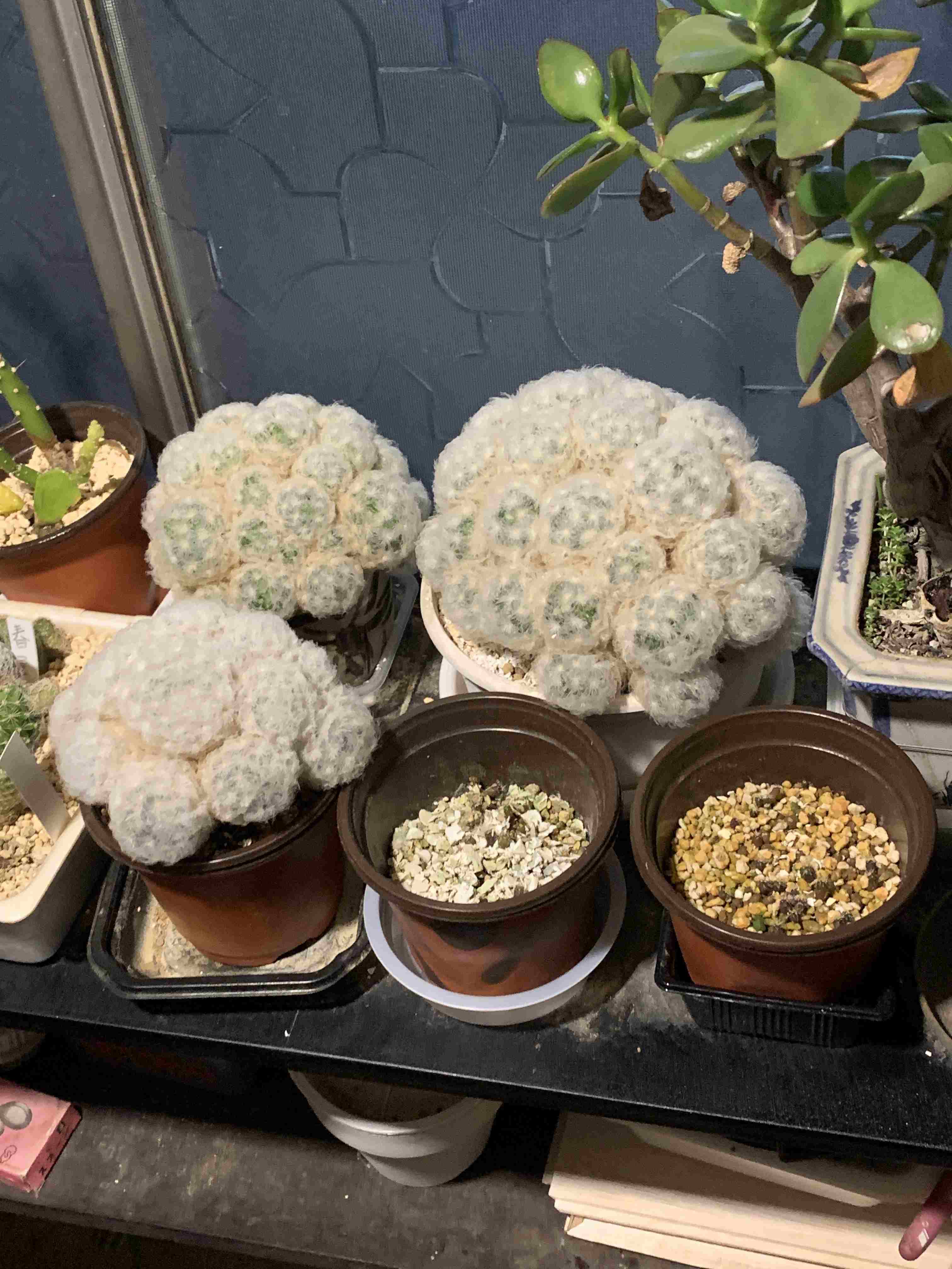サボテンの春 by オイッチニ · 2026年3月27日 窓際のサボテンたちに春がやってきました 美鈴富士とハオルチア パルバの花径が伸びて 美鈴富士には蕾が沢山っついています こちらは白星が大きくなって頼もしいです 手前は昨年、開花、結実した種の実生です まだ心細いですが少し丸みが出てきました 普通の銀手毬と見分けが出来なかったが 赤い花が咲いてやっと品種確認できました 左はは脳サボテンです。右のスーパー兜は 成長が遅く、いつまでも同じ大きさです。 最近、修理依頼は多くあるのですが ほとんど以前に挙げた記事の内容と同じで ネタ不足になっています。