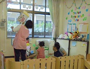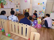 今日のしょうえんこどもこそだてルームは、月に1度の地域子育て関連情報の提供の日で、酒々井町保健センターの保健師さんから「熱中症、あせも、夏の感染予防」のお話をして頂きました。お友達は、お母さんがお話を聞いている間、子育てパートナーと一緒に遊んで待ちます。