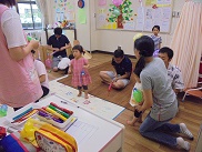 講話の後はいつものようにおもちゃなどでたくさん遊び、紙芝居や手遊びの時間がありました!