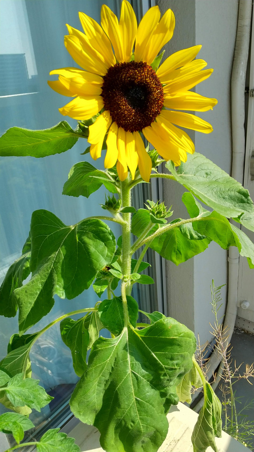 本当に憂鬱な日々ですが、バルコニーの「アサガオ」と「ひまわり」を見ている時間だけは爽やかに感じます。