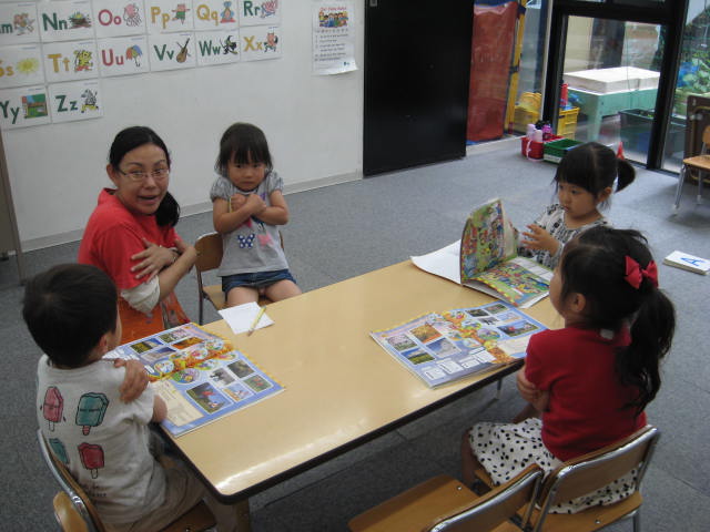この日のプリスクールは、今月の歌の「I am a little teapot」をみんなで踊りました。歌詞に合わせて、片方の腕を腰にあててポットの持ち手にしたり、もう片方の腕を曲げてポットの注ぎ口を作ったり、又、お湯が沸く様子を足をバタバタと動かして表現したりしながらこの歌を楽しみました。どのお友達も笑顔で上手にティーポットを作ることができました。