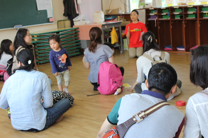 この日は青葉幼稚園の園開放でデモレッスンを行いました。head、eyes、nose、mouth、hands、 feet等と体の色々な部分の名まえが登場したレッスンでは、参加してくれたどのお友達もお母さんやお父さんと一緒にそれぞれの単語を元気よく言うことができました。また「Open, shut them, open, shut them・・・」とみんなで歌いながら、先生が指示する場所に手を置くアクティビティでは、自分の頭や足に手を置いたり、お母さんやお父さんの頭に手を置いたりしながら楽しむことができました。次回の青葉幼稚園の園開放でもたくさんのお友達に会えることを楽しみにしています!