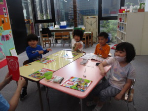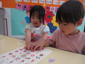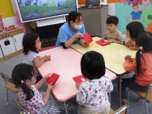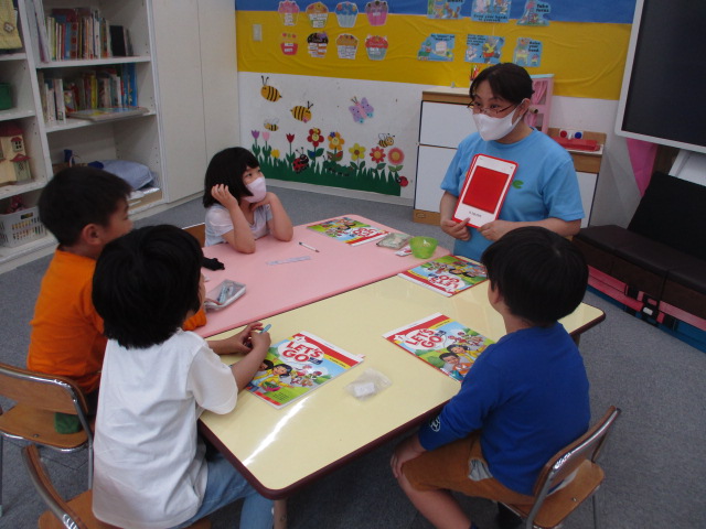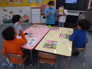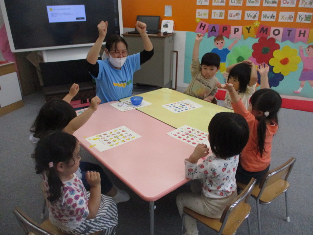 この日は、アクションを表す単語を覚えて「できること」「できないこと」を伝えるやりとりに挑戦しました。