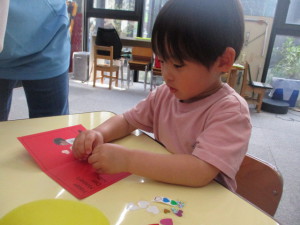 今年のクリスマスパーティでは、小学生のみんなは「elf」のオーナメントを作りました。カラフルな帽子や洋服を身に着けた小人さん達の登場です