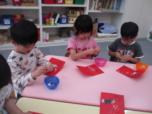 アクティビティでは、プレゼントの積み重ねや雪に見立てた綿をスプーンで運ぶ競争などを楽しみました![]()