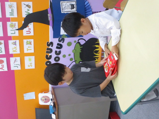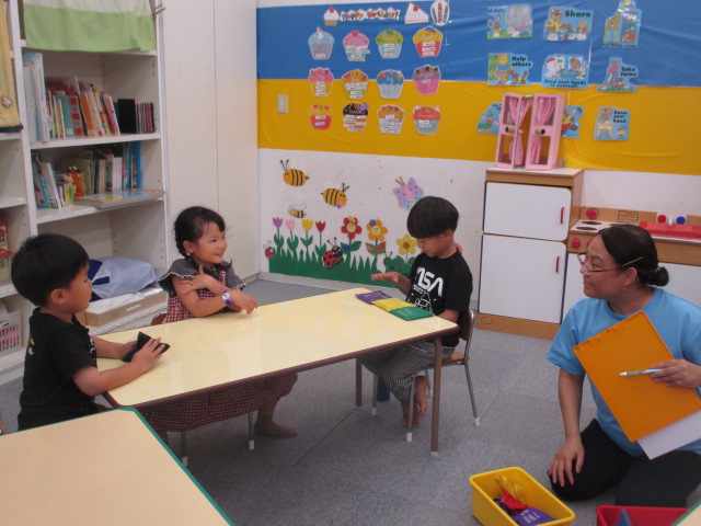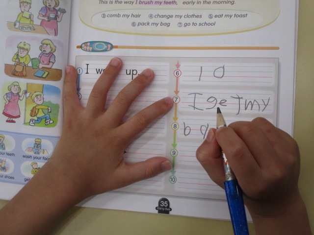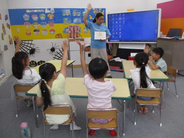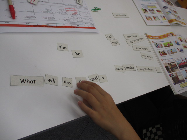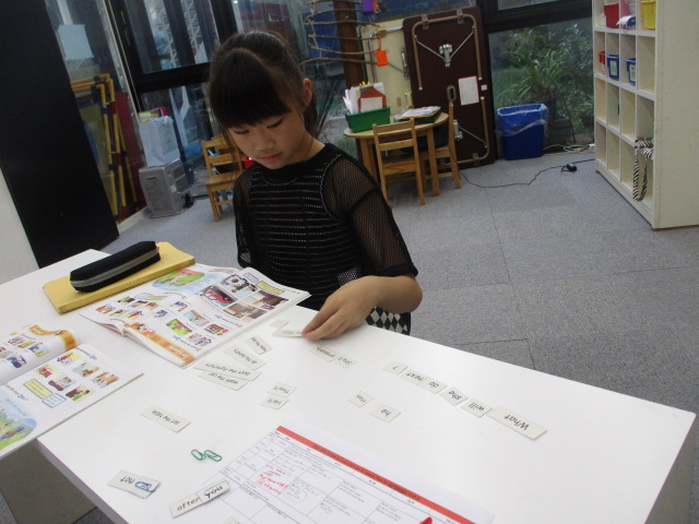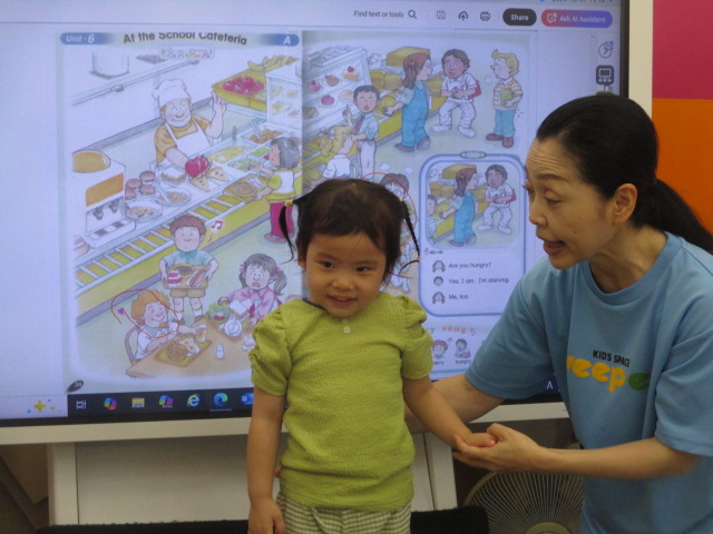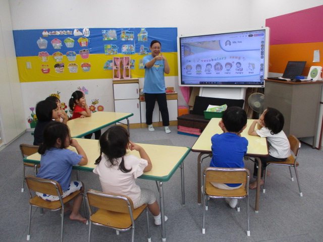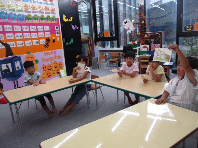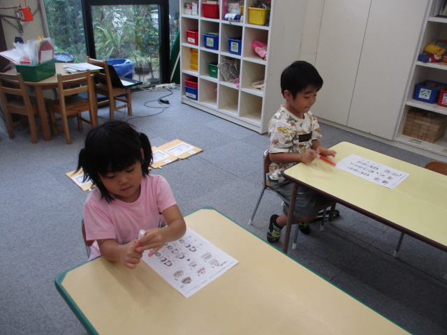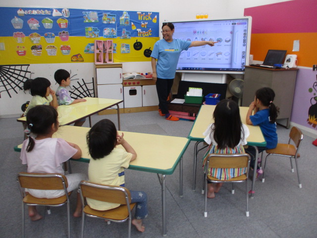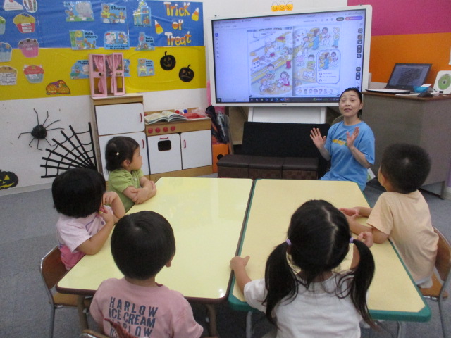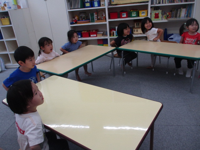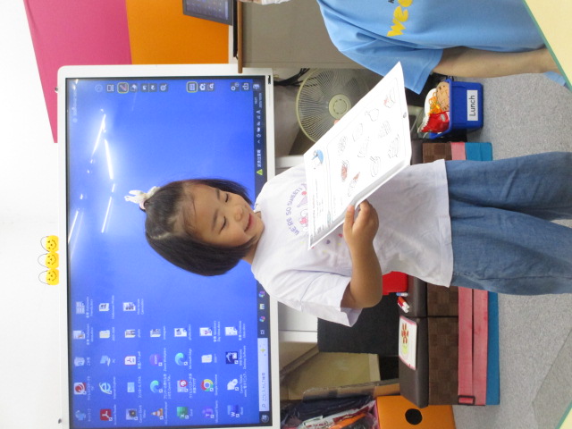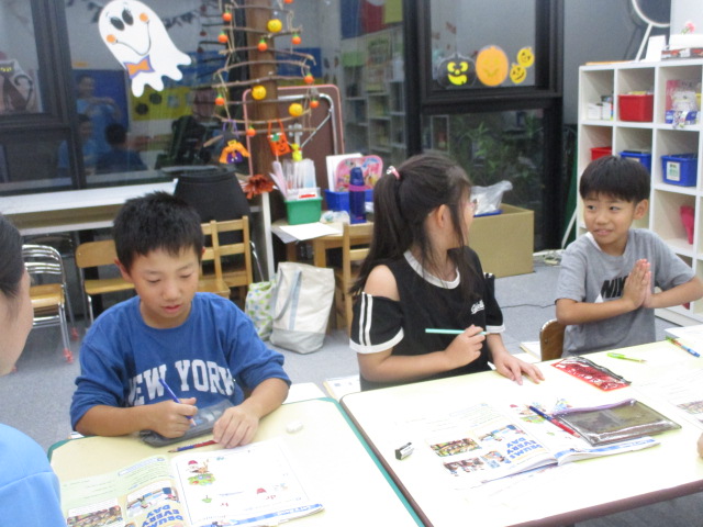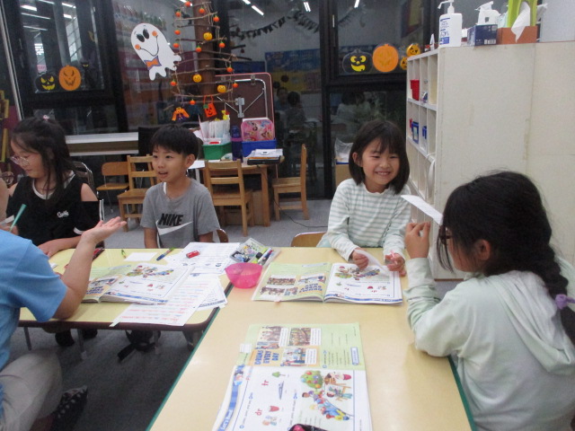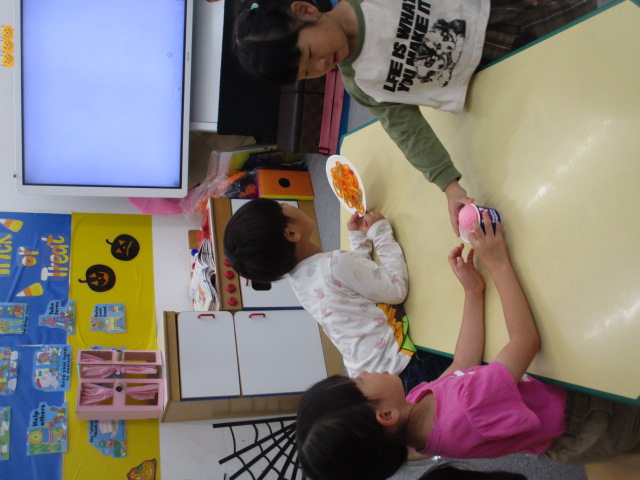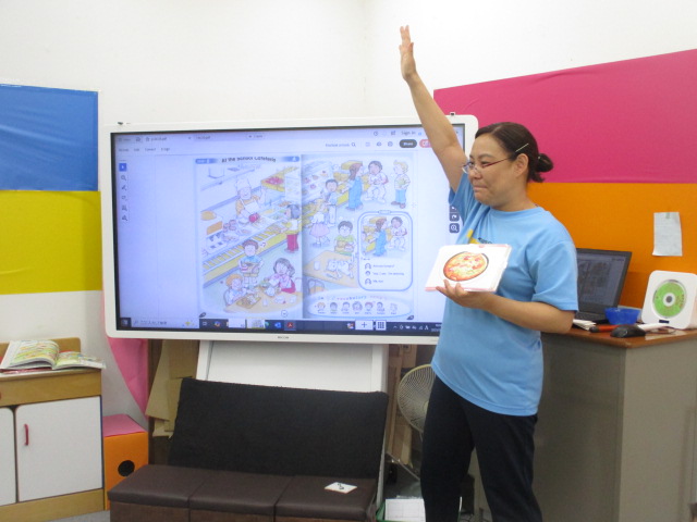 この日は、「食べ物」や「食器類」の単語を覚えて、自分が好きなものや食べたいものを伝えることに挑戦しました。