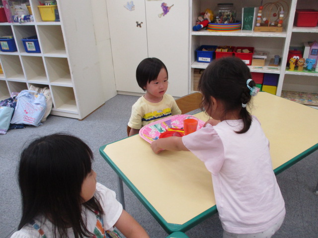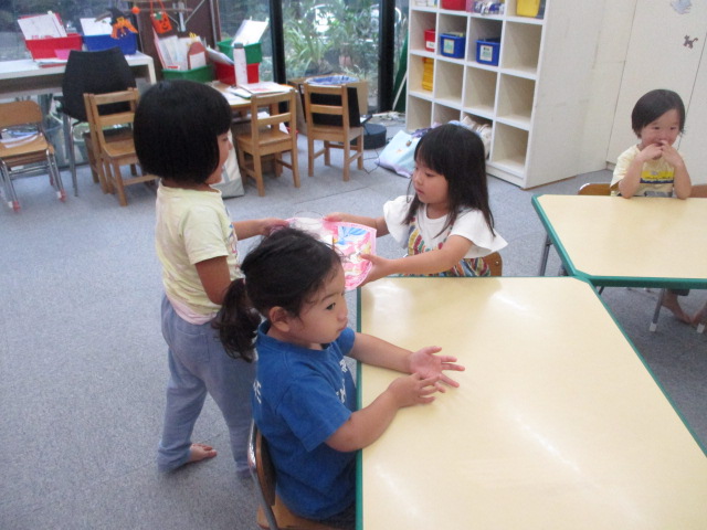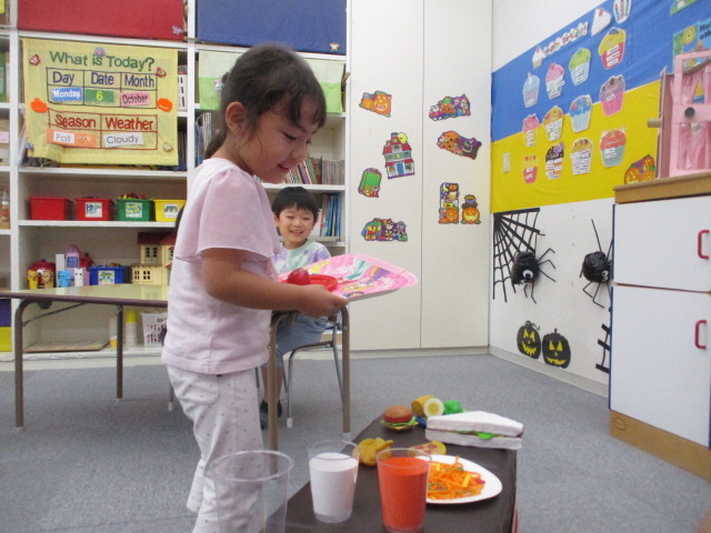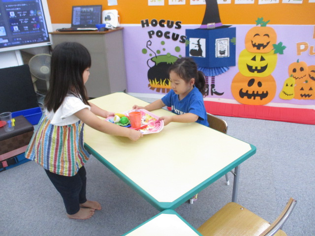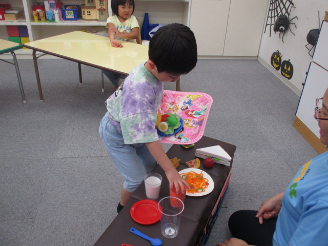 自分が伝えた食べたいものをお友だちが聞き取り、プレートにのせて持ってきてくれました。