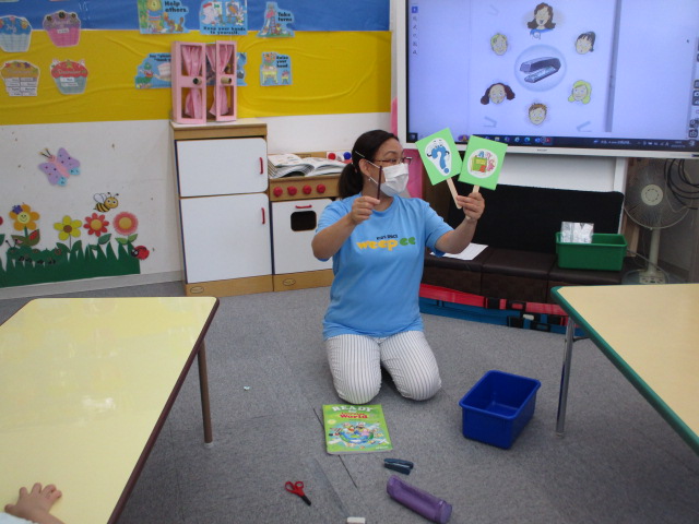 この日は、先週学習した「文房具」の復習から始まりました。