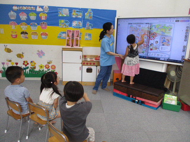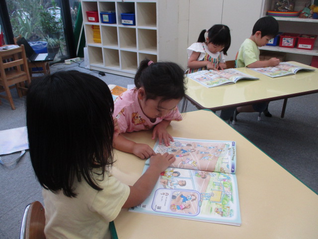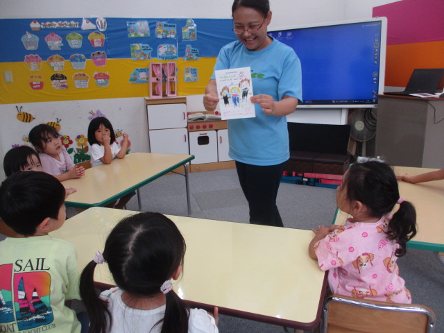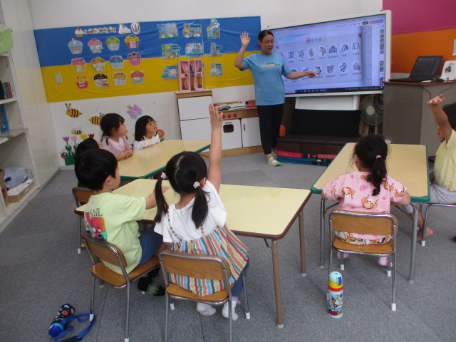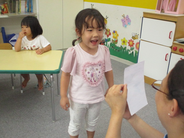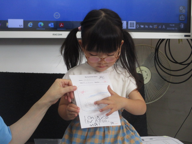 夏休み明けのレッスンとなったこの日は、みんなの絵日記の発表から始まりました。大好きな家族やお友だちとの思い出を素敵な絵にしてくれた夏休みの日記をみんなで見て楽しみました。
