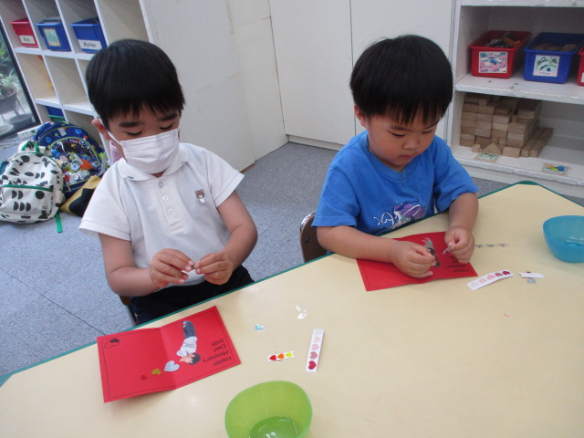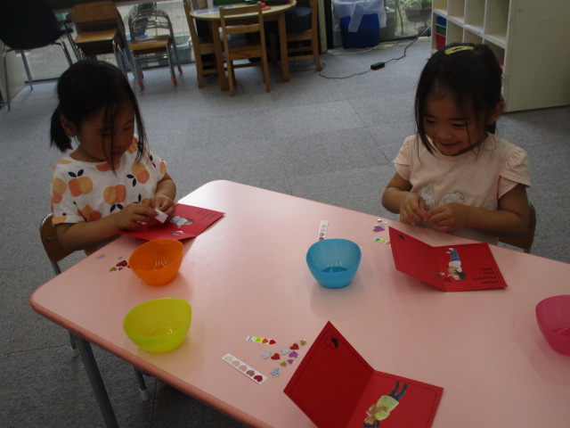 Grade 2 Class 「年中児 木曜日・金曜日クラス」の様子をご紹介いたします 今週は、「Moher’s Day」がテーマとなっています。年中児クラスのお友だちも、お母さんの好きなところを考えたり、お母さんへ贈るカードを作ったり、「Mother’s Day BINGO」を楽しんだりしました。