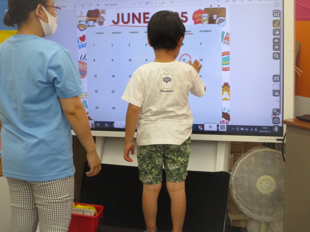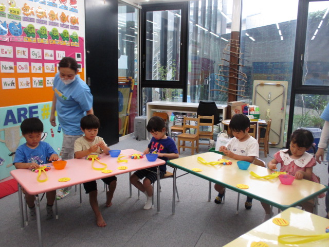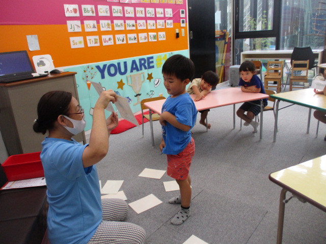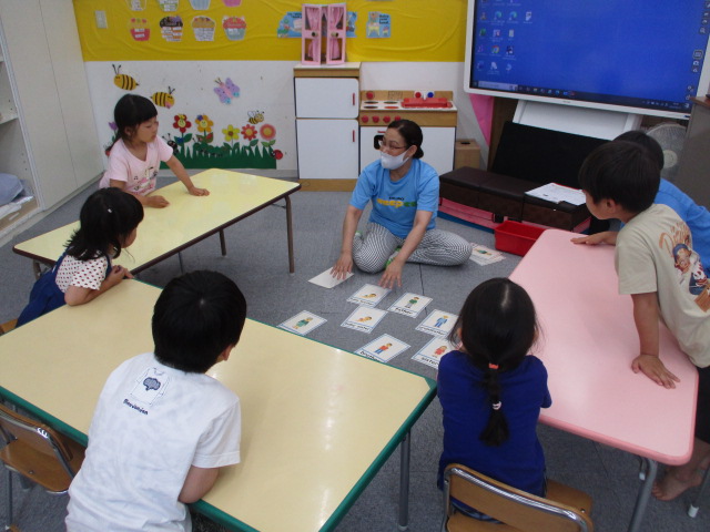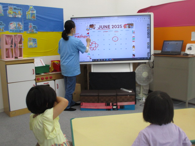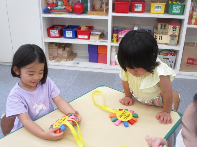 Grade 2 Class 「年中児 木曜日・金曜日クラス」の様子をご紹介いたします 「Father’s Day」がテーマの今週は、年中児クラスのお友だちもお父さんへ贈るメダル作りを楽しんだり、お父さんが好きなものや好きなことをみんなで考えてみました。「Let’s Find Father」ゲームでは、お父さんのカードをみつけようと一生懸命に取り組みました。