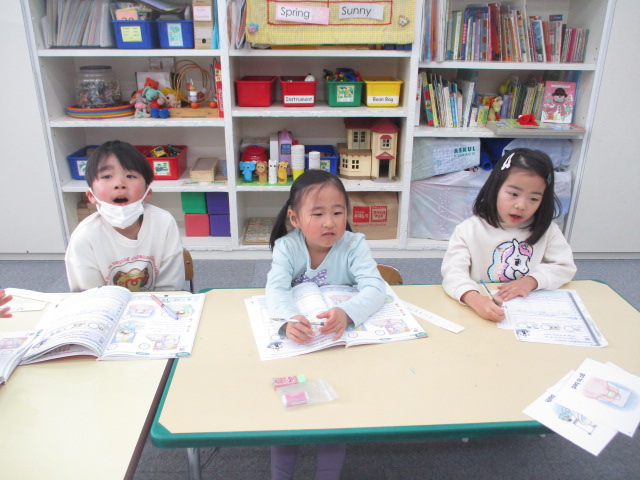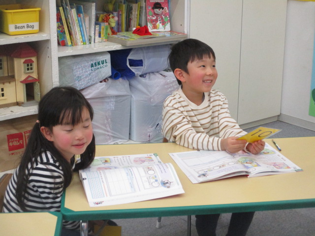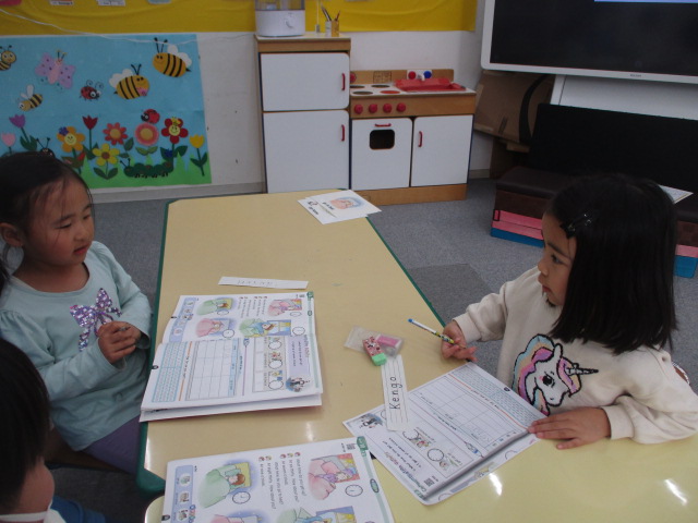又、「What time do you get up?」「What time do you go to bed? 」とお友だちが起きる時間と寝る時間をたずねることにも挑戦しました。